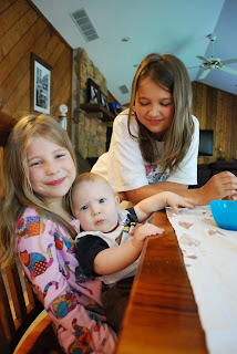 For example, Mark doesn't understand when his mouth is full. He crams as much food in there as he can. Since he doesn't use his fingers yet he is ramming fists full of food into his mouth. then he chokes a little. he likes putting food in his chair for later or putting it on the floor. feeding Austin is funny after all. So if I want him to feed himself I can only give him enough to fill up his greedy little baby mouth. Then wait for him to eat it and give him more.